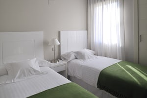 Bedden 2 x 2 eenpersoons, (kleding)kast, kussen zonder dons, beddengoed, stopcontact bij het bed, strijkijzer, prullenbakken, kledingrek, badlakens, droogrek voor kleding, betegelde/marmeren vloer, eigen ingang.